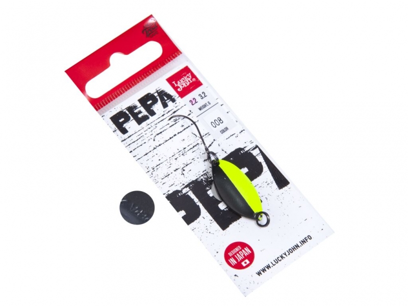 Lucky John PEPA - серия колеблющихся блесен для ультрала- и лайтовой спиннинговой ловли форели. Эти блесны соответствуют всем требованиям , предъявляемым к приманкам для ловли форели на платных, а так же для ловли рыбы в естественных водоемах и речках со средним течением и с небольшими глубинами