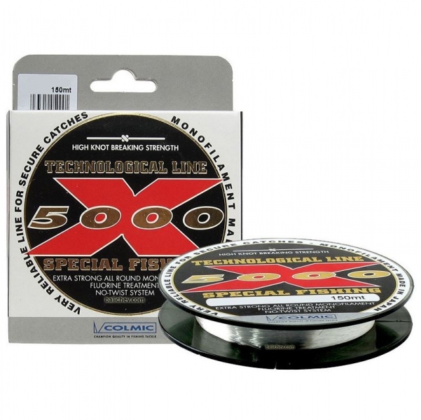 Леска монофильная COLMIC X-5000 / Диаметр 0,225мм / Тест 7,50кг / Длина 150м / Цвет прозрачный