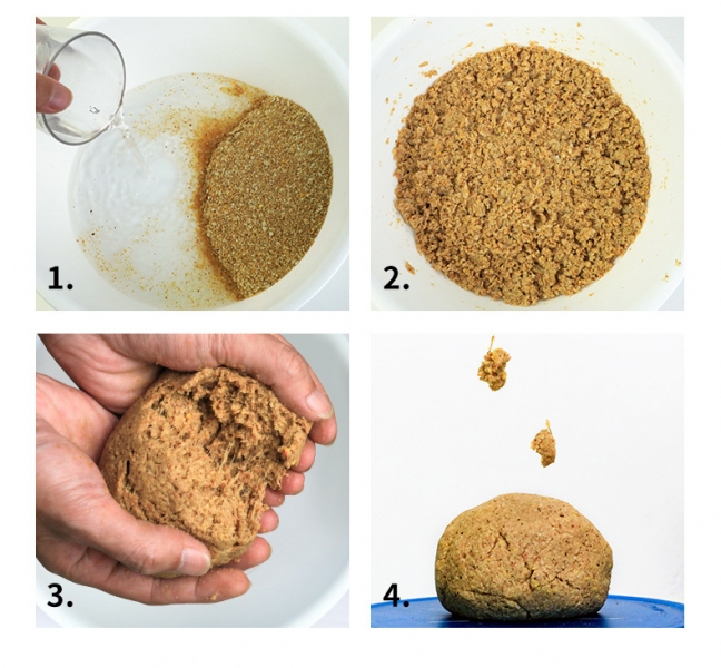 Перемешать содержимое пакета ,взять нужное количество смеси высыпать в миску и добавить воды, перемешать и дать настояться , собрать в комок и насадка готова.